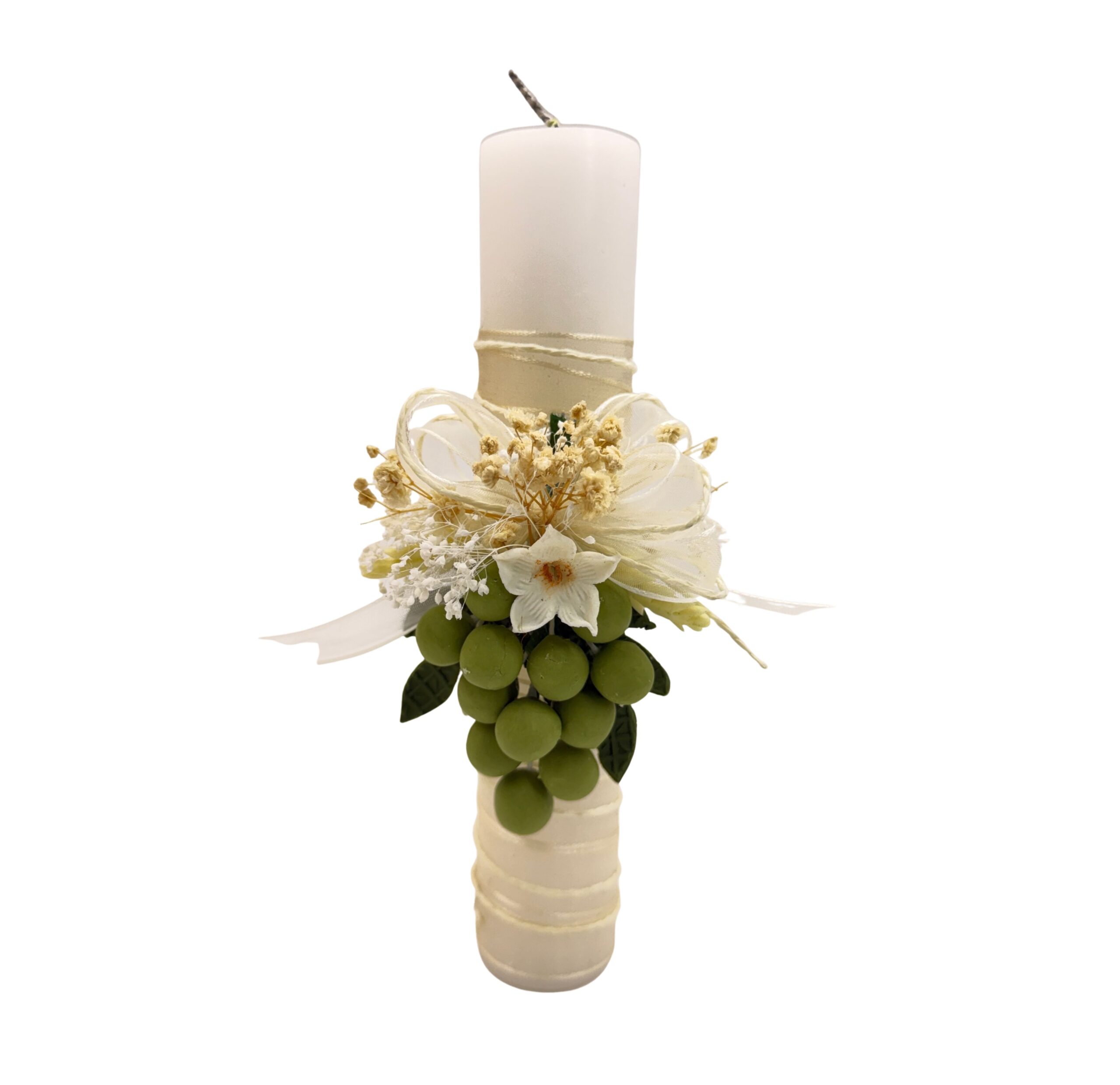 CANDELA REPUJADO Y RAMILLETE UTILIZADA NORMALMENTE PARA PRIMERA COMUNIÓN