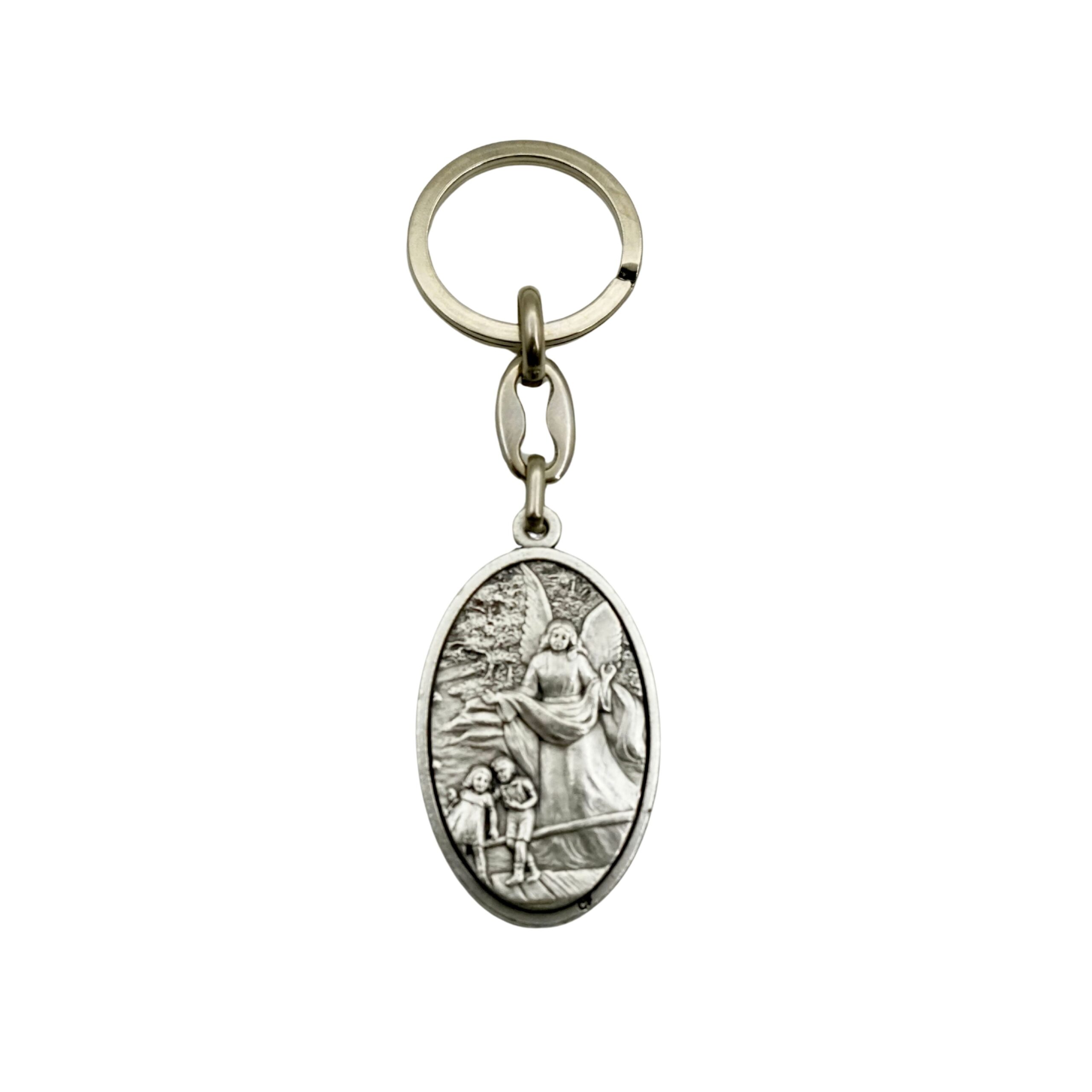 Llavero Ángel de la Guarda San Miguel Oval Plateado Souvenir Italy