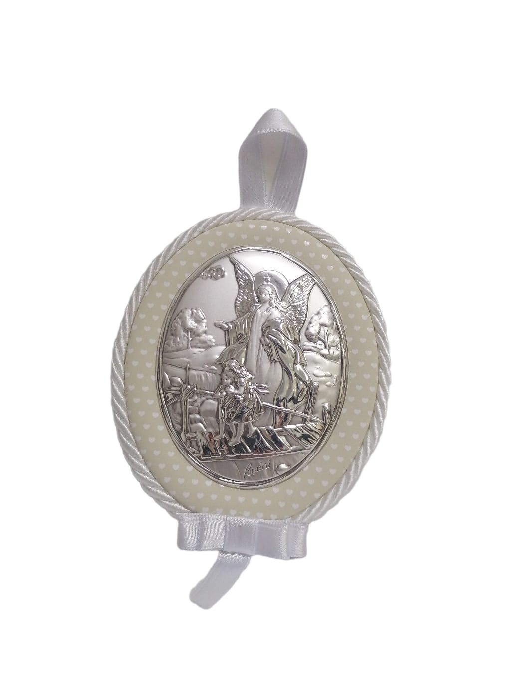Medida: 7X9CMS Medallon para cuna con plata italiana y tela, música.