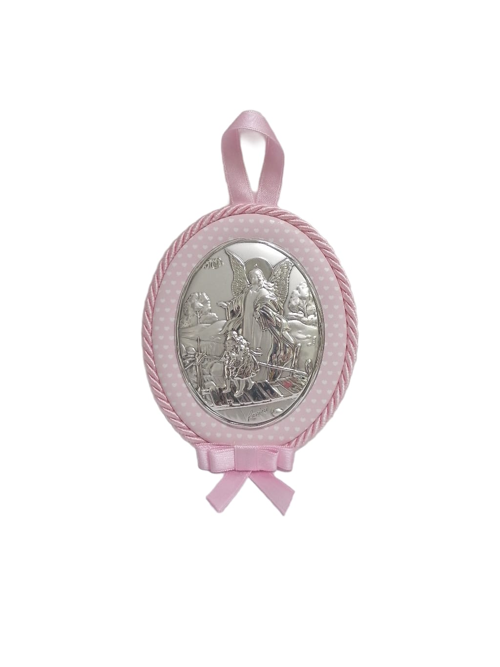 Medida: 7X9CMS Medallon para cuna con plata italiana y tela, música.