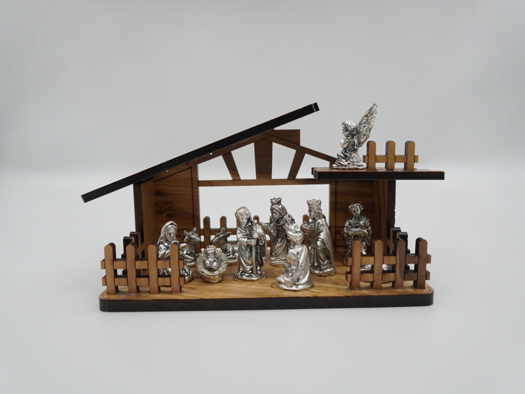 Nacimiento de madera de olivo y pewter, origen: Italia.