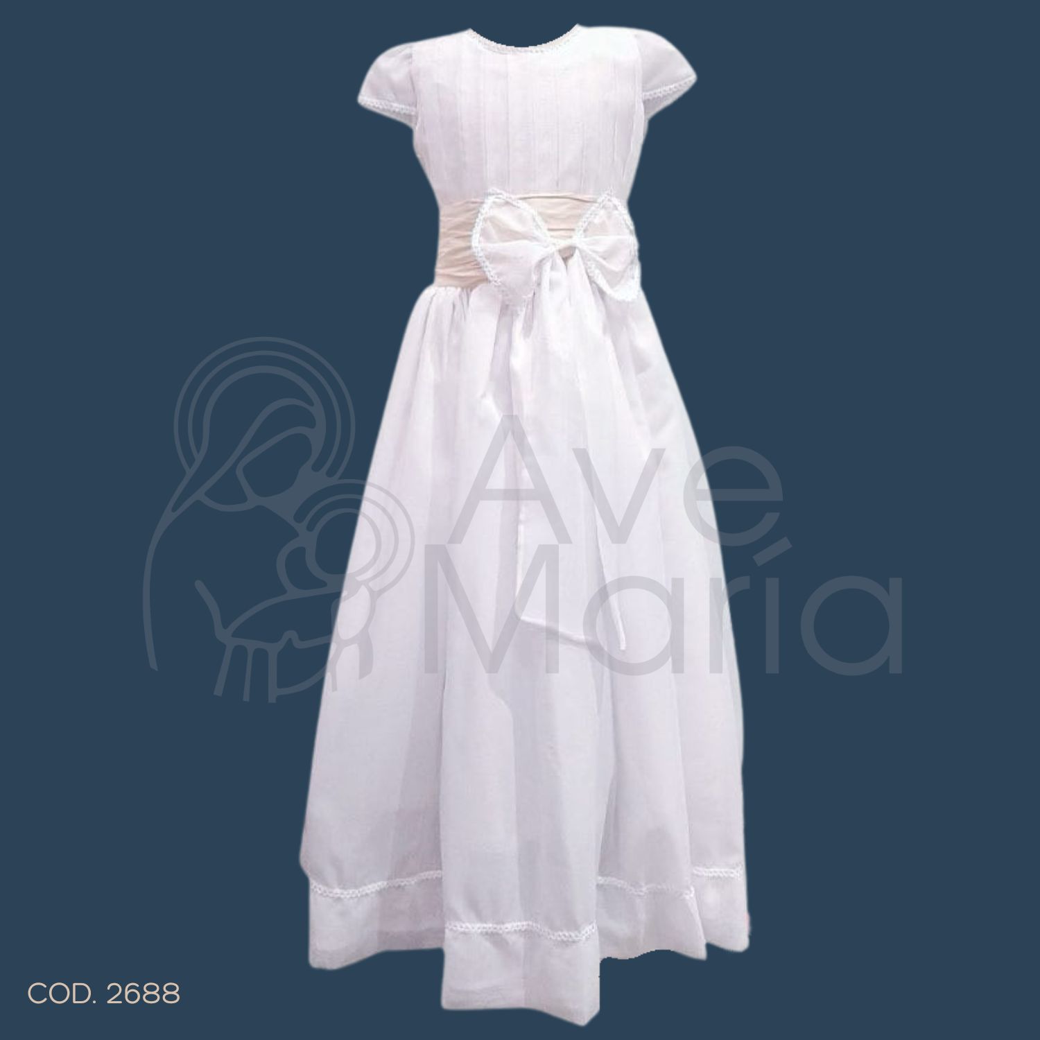 VESTIDO CHIFON ENCAJE PATY CON MOÑO BEIGE T10 BLANCO