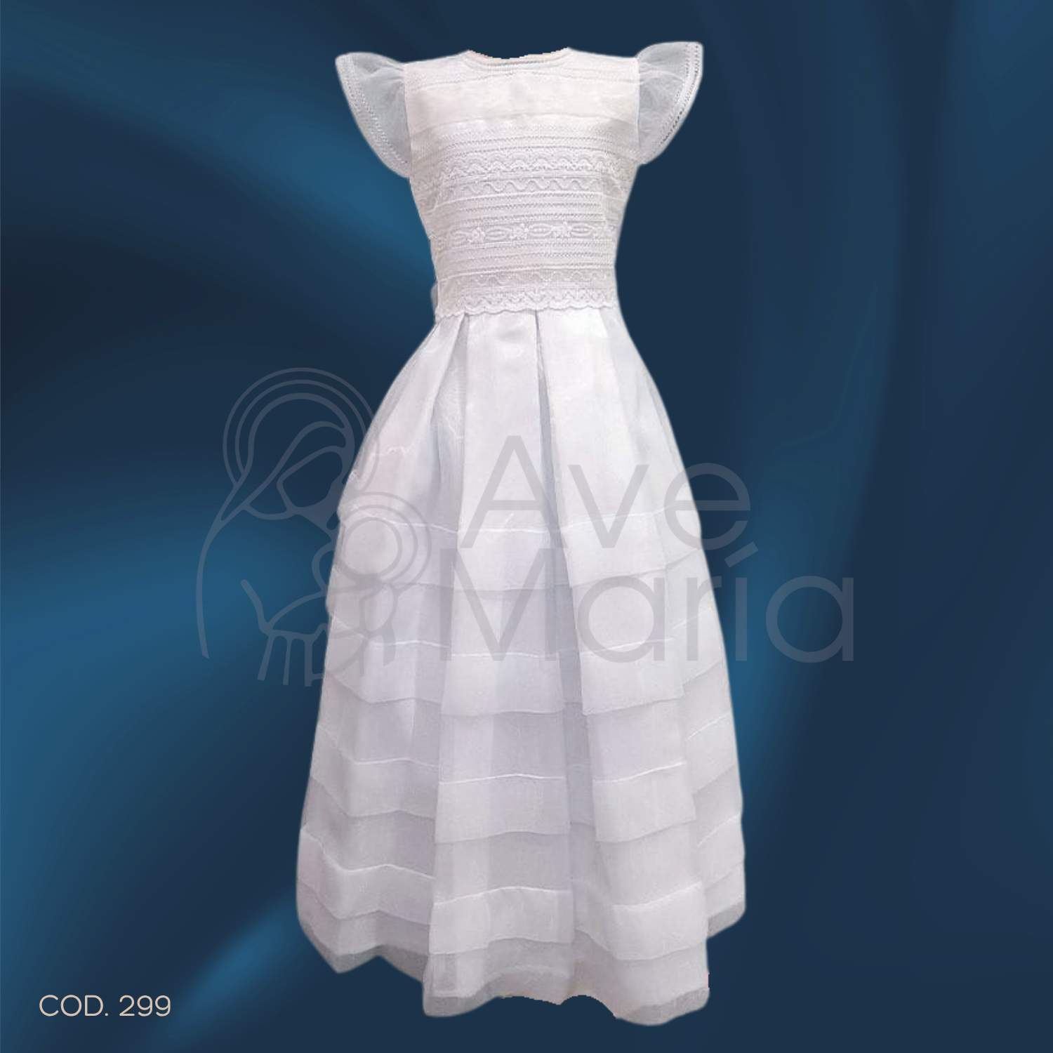 VESTIDOS ORG ENCANJE T8 BL FRANJA VERDE