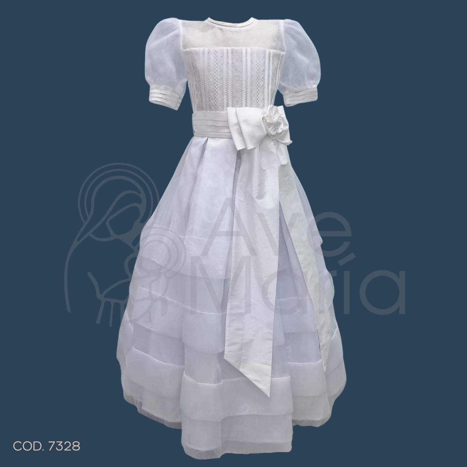 VESTIDOS ORGANZA ENCANJE FRANJAS GRECIA T 10 BLANCO *MOÑA REMOVIBLE*